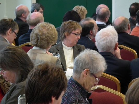 Clogher Diocesan Synod took place on Thursday 27th September 2012 in St Macartin's Cathedral Hall, Enniskillen. During the Pre-Synod Service of Holy Communion, at which the bishop was celebrant, Mr George Montgomery, a synod member from Aughnamullen Parish along with Miss Marion Henderson of the Methodist Church and Mr Martin Donnelly of the Roman Catholic Church read the lessons, and the Revd David Cupples, of the Presbyterian Church, assisted with the administration of Communion. The Curate Assistant of Magheraculmoney, the Revd Caroline Mansley, read the Gospel reading and Mr Jim Kerr, a Diocesan Reader, led the intercessions.