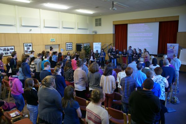 The day began with registration and coffee followed by worship led by the "Elation" band from Dublin who provided a rich mixture of instruments and vocals to inspire us to praise. The first workshops then followed in five key areas; Youth Ministry Resources, Drama, Games, Arts and Crafts and Worship. At the lunch break there was time to chat perusing the resources for sale and exchange ideas and inspiration gleaned at the first workshop sessions. It was also very interesting to visit the prayer labyrinth at the arts and crafts section and to see the many creative ideas for prayer.