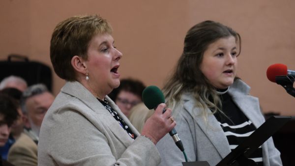 Lynda and Alice Lindsay from Lisbellaw Parish were accompanied on the piano by Glenn Moore as they sang, “Jesus, Keep me Near the Cross.”