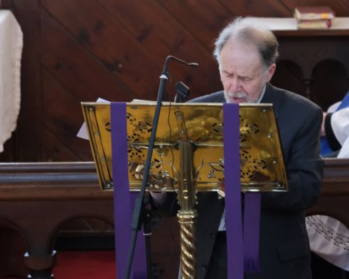 Mr Jack Johnston former secretary of Friends of Clogher Cathedral reading a lesson.