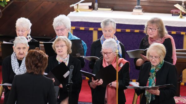 The hymns were; “God is here,” “Thy hand, O God, has guided” and “Saviour, again to thy dear name we raise.” The organist was Mrs Diane Simpson and guest music was provided by Tully Meadow Singers accompanied by Roisin McCurry with conductor, Siobhan O’Neill.