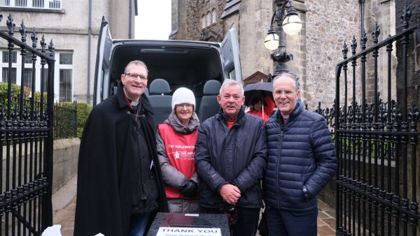Dean Kenneth Hall's charity sit-out at Enniskillen Cathedral had a stormy beginning at 9am this morning as the wind and rain from Storm Pia passed over Fermanagh.