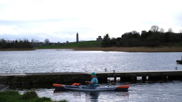 Revd Stephen McWhirter completes his canoe from Enniskillen at Trory jetty.