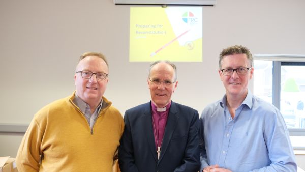 Attending the TRC roadshow in Enniskillen are Peter Hamill Bishop Ian Ellis and Andy Brown.