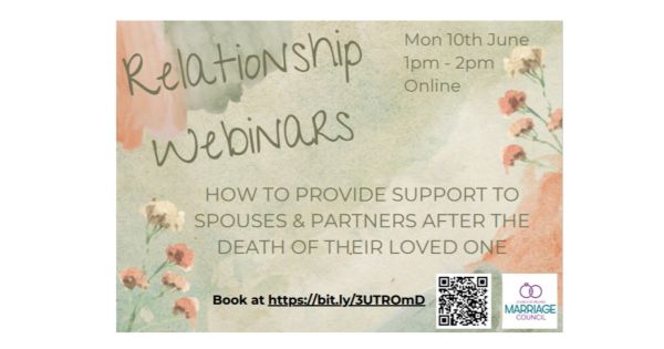 The Church of Ireland Marriage Council is hosting a one hour online webinar next Monday, 10th June, from 1pm, looking at how church leaders and members of churches can provide support to spouses and partners after the death of their loved one.