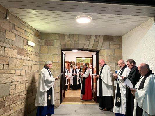 The Bishop and clergy lining up after the the service to welcome Revd William Boyce.
