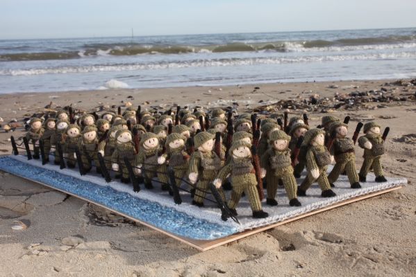 It took over 1000 people knitting and crocheting from countries across the world including the UK, USA, Australia, New Zealand, Canada and France to create the intricate scenes including the horrors on the Landing Beaches and some of the battles.