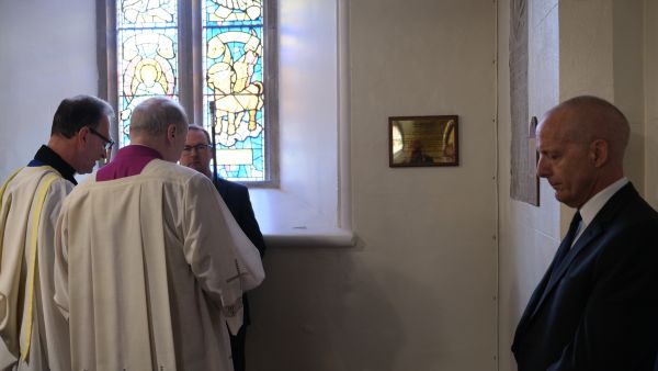 The plaque in memory of Revd Kerry Waterstone and Mrs Edie Waterstone is dedicated.