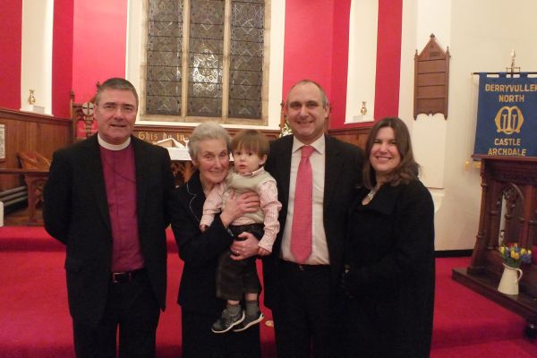 Bishop McDowell Dr Margaret Knox with grandson Charlie son David daughter-in-law Freya
