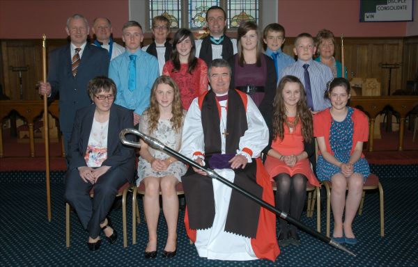 Sunday evening 28th April marked a significant moment in the life of nine young people and one adult from the parish, when they came before the Bishop to confirm their commitment to Jesus Christ as their Lord and Saviour and to continue to live a life of commitment to God that will find expression in the life of the local church. The Rector, The Revd. Henry Blair and his Curate, Revd. Caroline Mansley are pictured here with the Bishop, The Rt. Revd. John McDowell and those confirmed. Also in the photograph is Mr Brian Ross, Parish Reader along with Churchwardens Mrs Louie Lee and Mr Robert Thompson.
