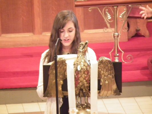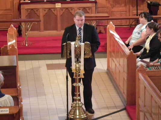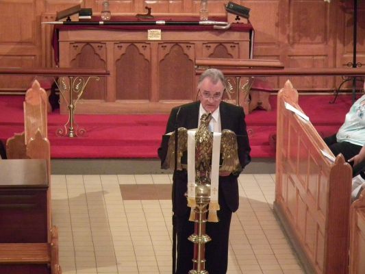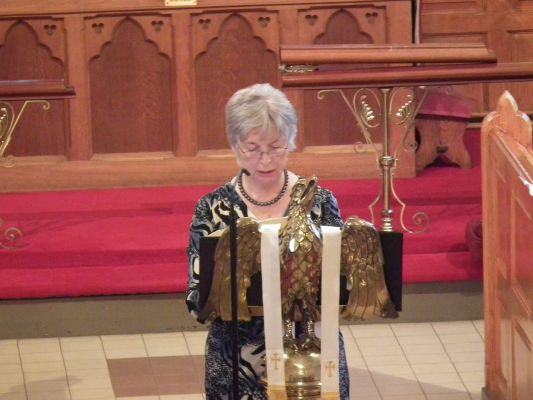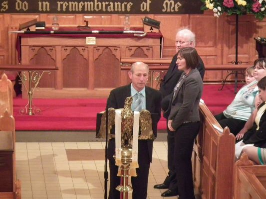 The processional hymn was the well known early Irish hymn Be thou my vision, O Lord of my heart. The first reading was from Genesis chapter 28, read by Mr Darren Morrow. The Rural Dean, the Revd Canon Helene T. Steed, led Psalm 42 and the second reading was from Ephesians chapter 4, read by Mrs Hazel Robinson. The gradual hymn was Great is thy faithfulness, which was followed by the Gospel reading from St John chapter 15, read by Miss Rebekah Clingan. The sermon was followed by the hymn I, the Lord of sea and sky.