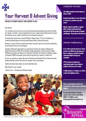 Click the 'Harvest Letter' link below the image for details of an urgent appeal from Bishop Patrick Rooke, chair of the Bishops' Appeal committee, for funds this harvest and advent time.