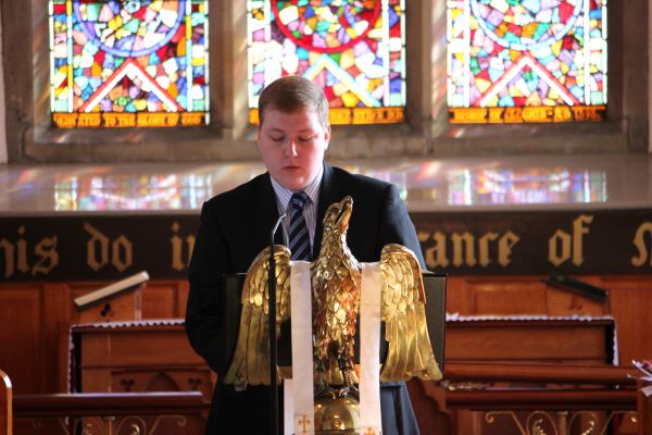 The lessons were read Darren Morrow, Eileen Hall and Charles Crawford with the duet of Roisin Kerr (harp) and Grace Kettyle (violin) playing verses of "I am the Lord of the Dance" before, between and after the readings.