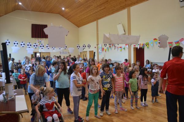 The games centred on football and the various training and coaching skills associated with the sport aptly set up and guided by Bill and Diane. The emphasis throughout the week was teamwork without the I. The children created team mascots for each of the teams present and were awarded points on design and names. A number of crafts done by the children included scratch T-shirts and bookmarkers.