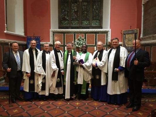 Pictured from left: Cllr Keith Elliott (Churchwarden), Dean Kenneth Hall, Canon Brian Harper, Dean Gregory Dunstan, Bishop John McDowell, Revd Sampson Ajuka (Bishop's Chaplain), Chancellor John Stewart, Canon Mark Watson and Mr Jim Elliott (Churchwarden).