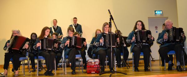 The local Glassmullagh accordion band impressed the packed audience with a repertoire of well-known marching tunes and a waltz and jig performed by Stacey Moss, which thrilled those listening.
