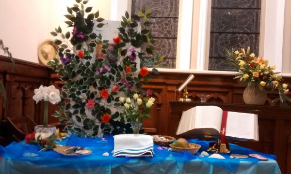 Colebrooke Parish Church was transformed into a Bahamian scene for the annual Women's World Day of Prayer, prepared this year by the women of the Bahamas. Shades of blue formed the backdrop to the display of shells, flower petals, tropical fruit, leaves and flowers. The names of all the islands were displayed, highlighting the size and diversity of the island communities. A moving and informative power point, prepared by Reverend John McClenaghan and Carol, brought to life the atmosphere of the islands as well as the challenge of the message.