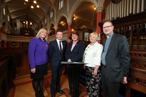 Pictured above from left are: Heather Gott, Community Fundraising Fermanagh & Tyrone; Northern Ireland Hospice; Jonathan Ireland; The First Minister Arlene Foster; Heather Weir, Chief Executive of Northern Ireland Hospice and The Very Revd Kenneth Hall, Dean of Clogher.