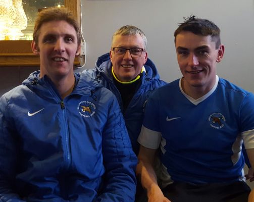 L-R Assistant Coach Andy Crawford Club Chaplain Archdeacon Brian Harper and player James McKenna