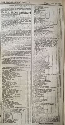 The list of subscribers to the tin church at Laragh, as published in the Irish Ecclesiastical Gazette, forerunner to the Church of Ireland Gazette, 20th June 1890.