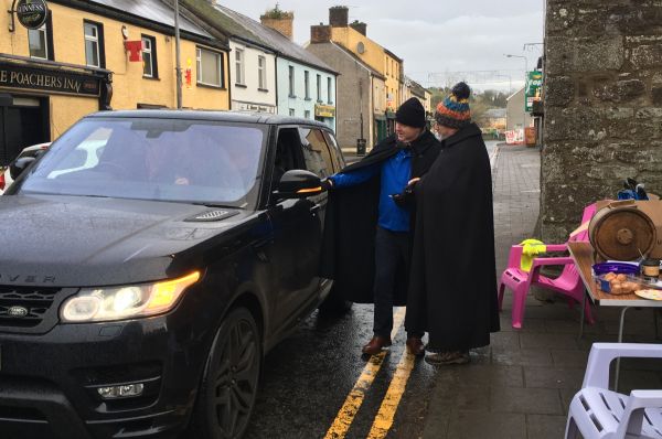 While the storm of the previous day had passed on, both clerics were well wrapped up against the elements as they stood outside Magheracross Church on the Main Street to collect donations.